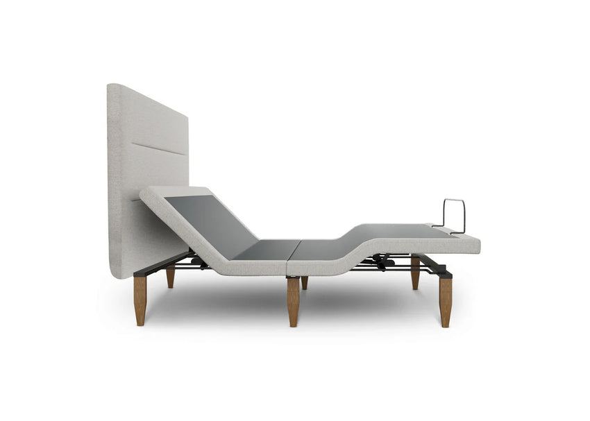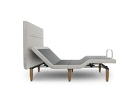 The Adjustable Base with Headboard is all you need to elevate your sleep and bedroom aesthetic. While the adjustable head and foot add functionality, the mid-century modern legs and upholstered headboard add style.