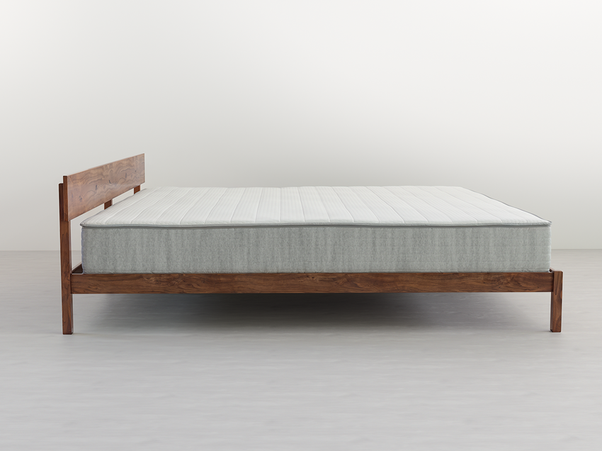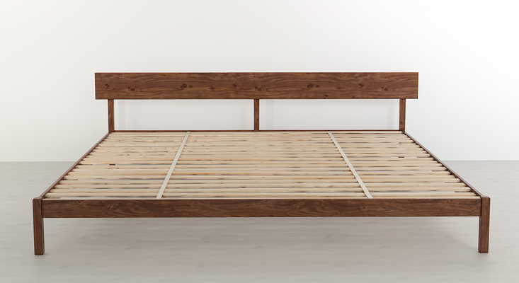 This platform bed frame provides the necessary strength and stability to elevate and support a 9-by-9-foot mattress. In addition to the exterior frame, solid hardwood slats and two central support beams bolster your bed.