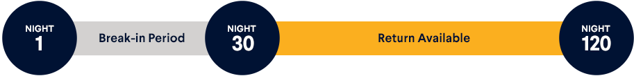 If, against all expectations, you don't love your Nolah mattress, contact us before Night 120 to initiate the hassle-free return process. You'll receive a full refund minus a $99 flat fee for pickup and return shipping.