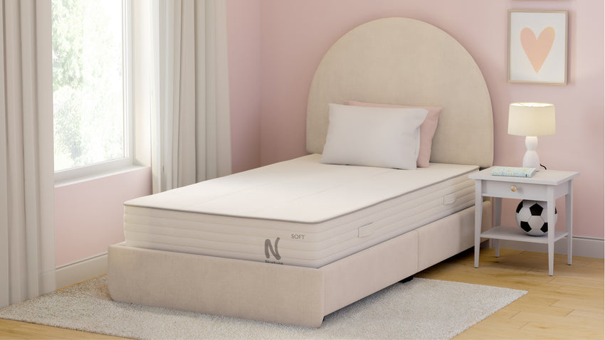 This platform-style bed frame pairs perfectly with our flippable kids' mattress. Together, they can comfort and support your child from their toddler to preteen years.