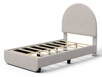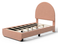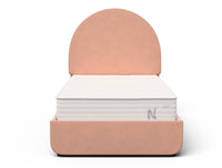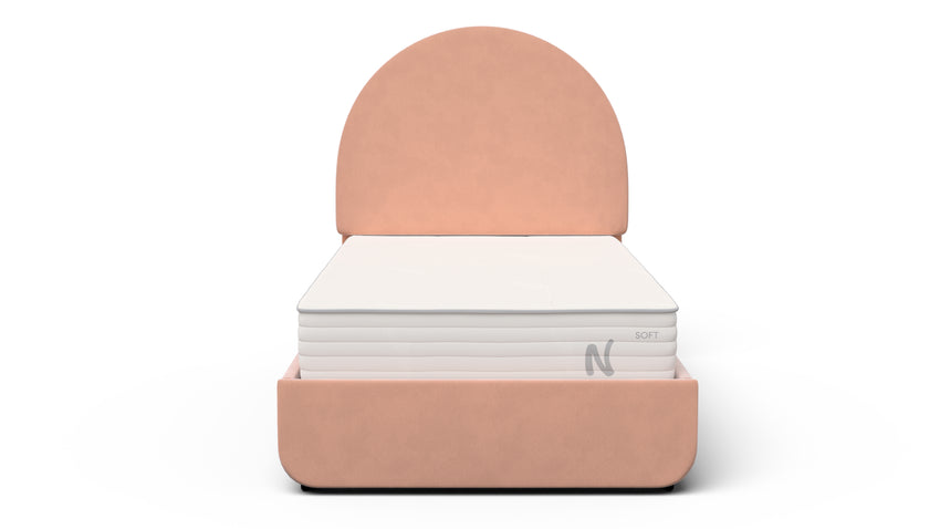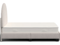 Warm color options and a bold arch give this kids' bed playful charm, while the padded headboard offers something comfortable to lean on during bedtime routines.