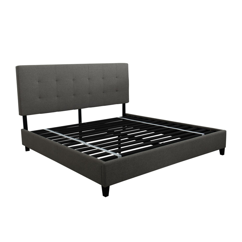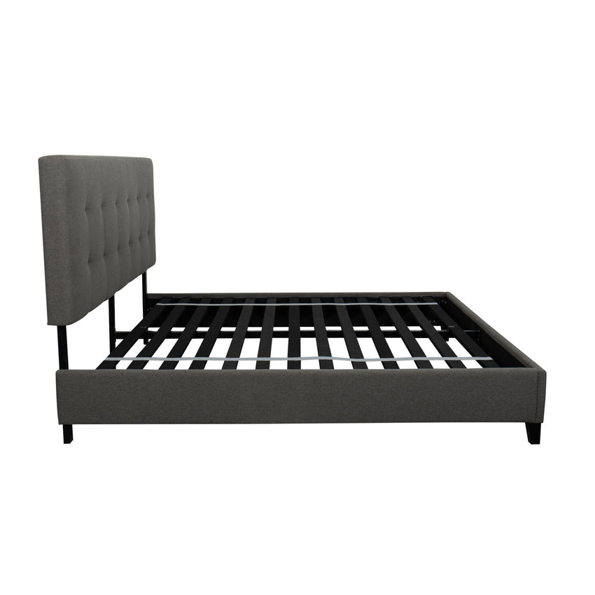 The Tranquility's fresh but traditional features make it a cohesive fit for virtually any bedroom. Its charcoal gray upholstery and tufted headboard give it a cozy, calming feel that will complement your space and comfortable sleep.